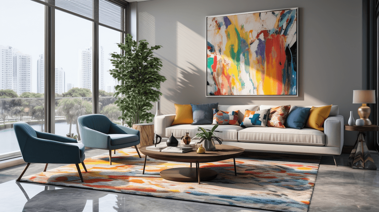Display a room with an eye-catching, statement rug that adds personality and warmth.